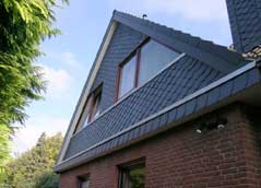 Schiefer, vor Millionen von Jahren entstanden, ist seit Jahrhunderten an Dach und Wand bewährt. Als Naturprodukt verbindet sich im Schiefer naturnahes Bauen mit den Anforderungen eines zeitlosen Baustoffes. Moderne und rationelle Gewinnungsmethoden im Schieferbergbau sowie neue Formate und Verlegetechniken machen Schiefer für jeden Bauherren erschwinglich. Ob auf dem Dach oder im Fassadenbereich, Schiefer ist ein Dokument der Erdgeschichte und wirkt einfach Einzigartig und faszinierend. |